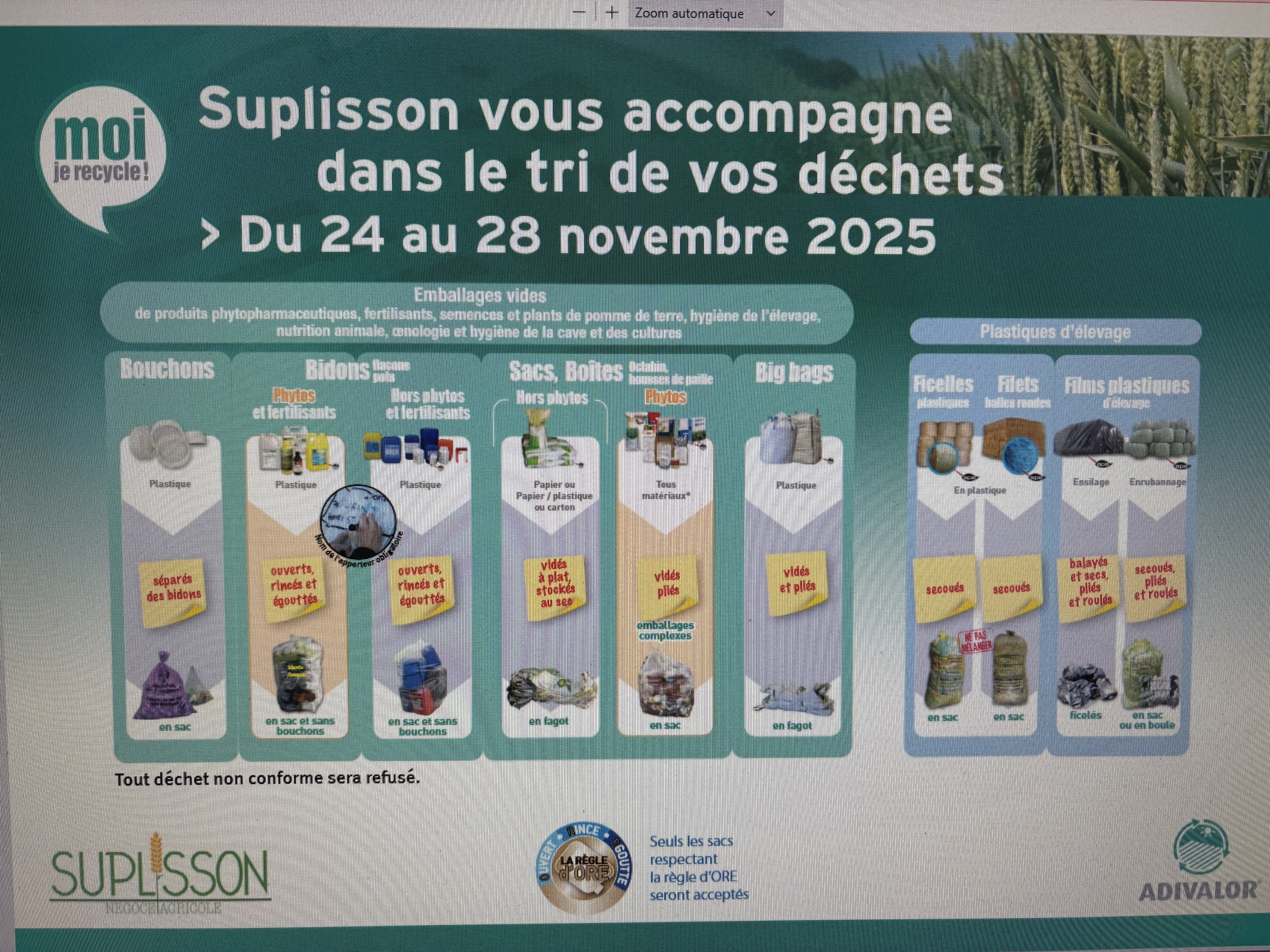 La collecte des déchets (Films plastiques, ficelles, bidons, big bags, sacs...) se déroulera du 24 au 28 Novembre 2025.